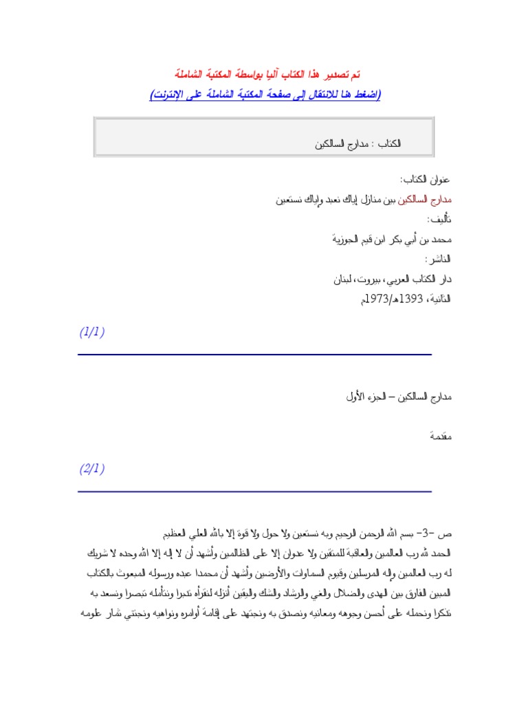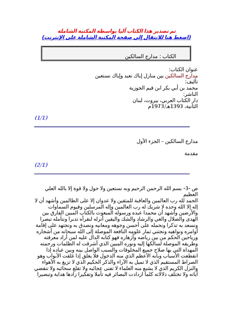 مدارج السالكين بين منازل إياك نعبد و المكتبة السلفية الشاملة Pdf Facebook