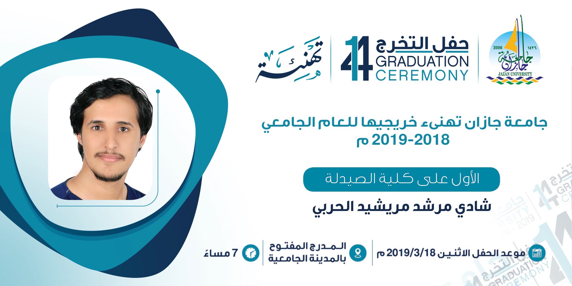 O Xrhsths جامعة جازان Sto Twitter تهنىء جامعة جازان الأول على كلية الصيدلة شادي الحربي أوائل الدفعه 14 جامعه جازان حفل تخريج الدفعه 14