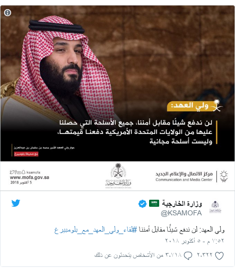 ولي العهد لـ بلومبيرغ السعودية تشتري الأسلحة من أمريكا و لا تأخذها بالمجان صحيفة المناطق السعوديةصحيفة المناطق السعودية