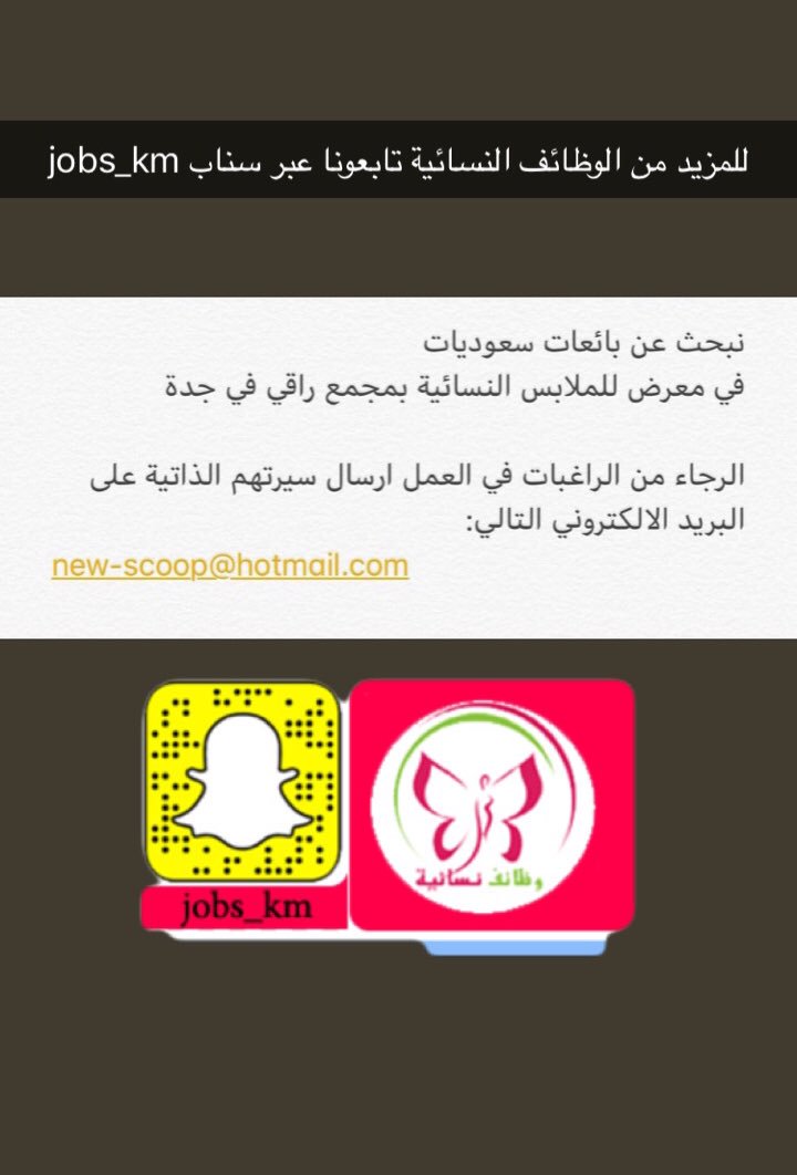 وظائف نسائية On Twitter وظائف نسائية في جدة مطلوب بائعات سعوديات في معرض للملابس النسائية بمجمع راقي في جده Jobs Km وظائف جدة للنساء توظيف نساء بجدة Https T Co Czzvlbr8g6